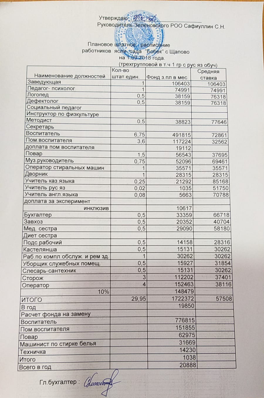 Штаттық кесте 2018